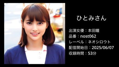 【ひとみさん】気品と色気を兼ね備えた大人の看護師と過ごす癒しの時間|本田瞳|nost062|ネオシロウト