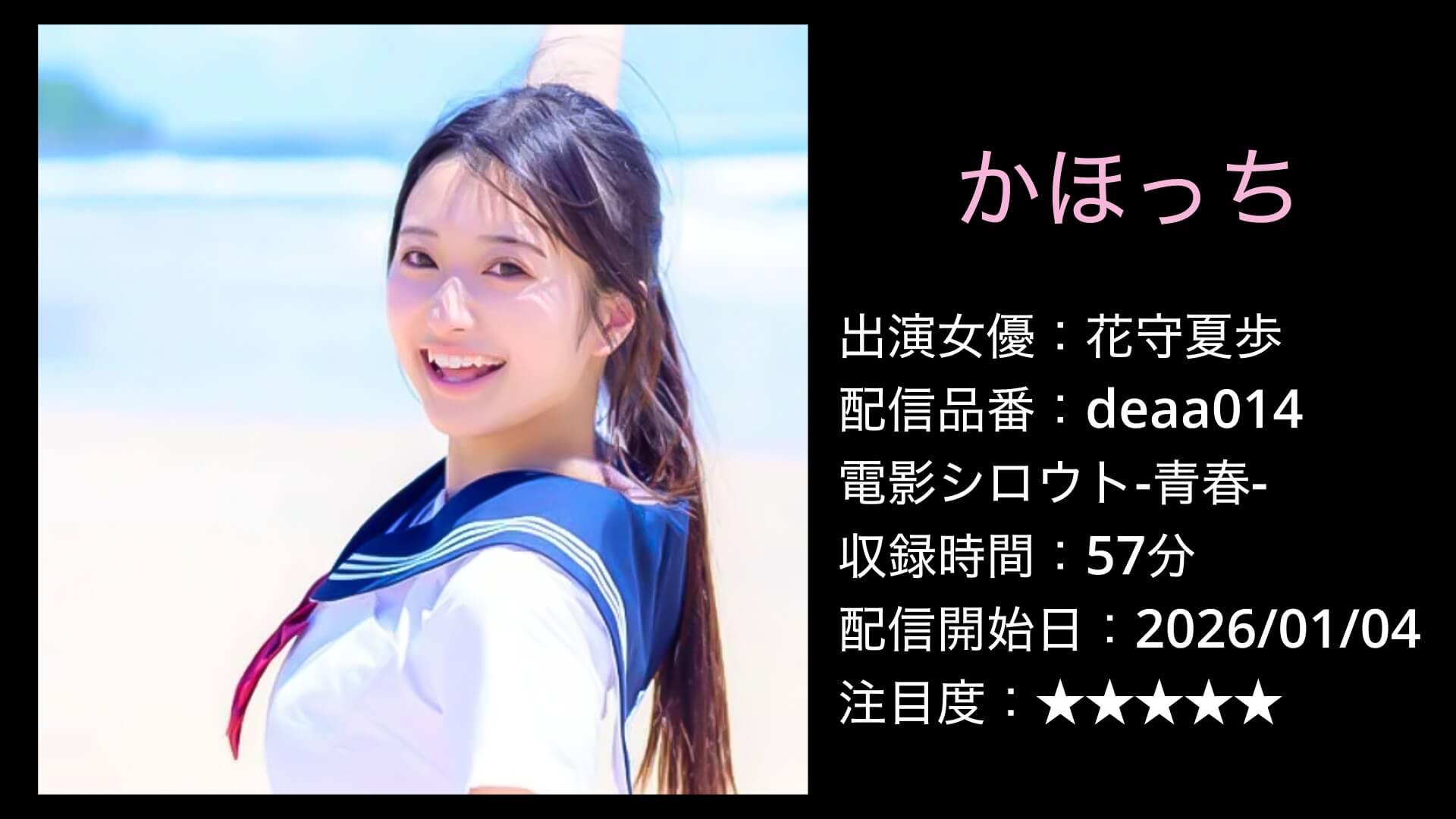 - 花守夏歩出演の「かほっち deaa014」は、夏の海での出会いから始まる自然な距離感が魅力の作品です。