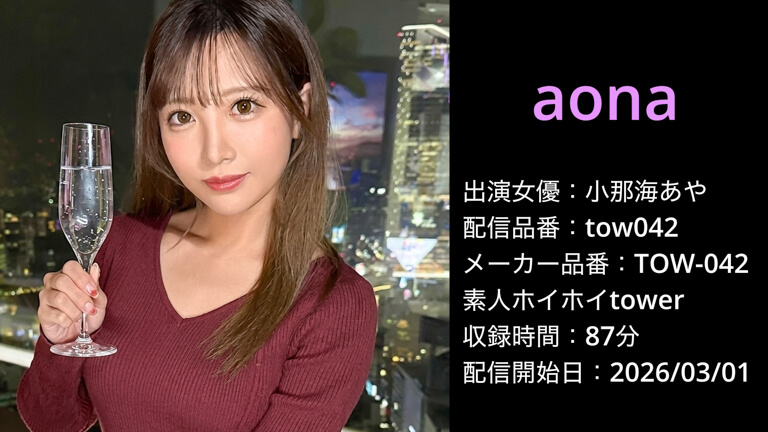 今回ご紹介するのは、素人ホイホイtower配信の「aona」(メーカー品番 TOW-042/配信品番 tow042)です。本作は“お酒が入ったあとの表情の変化と、二人きりの距離の近さ”を中心に構成されています。