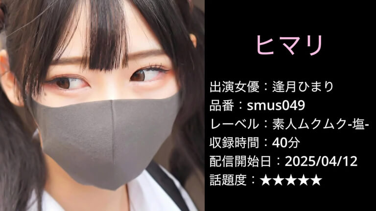 今回ご紹介するのは、素人ムクムク-塩-配信の「ヒマリ」(メーカー品番 SMUS-049/配信品番 smus049)です。本作は“塩対応の空気を保ちながら、逢月ひまりさんの関西弁まじりの反応が少しずつやわらいでいく流れ”を中心に構成されています。
