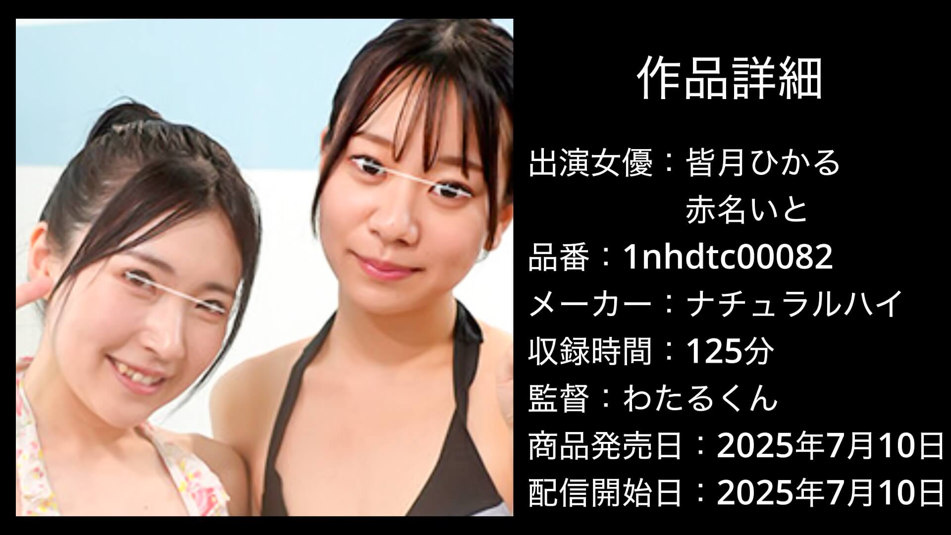 1nhdtc00082|つるぺた女子の男水着チャレンジは、ナチュラルハイの配信作品で、出演女優は皆月ひかるさんと赤名いとさんです。