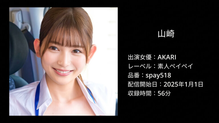 今回ご紹介するのは、レーベル「素人ペイペイ」から配信された作品 spay518 「山崎」。登場するのは、自動車教習所で働くスレンダー美女・山崎さんです。落ち着いた雰囲気と親しみやすい笑顔を兼ね備え、生徒からの信頼も厚い人気教官。その自然体の魅力が映像全体に漂っています。