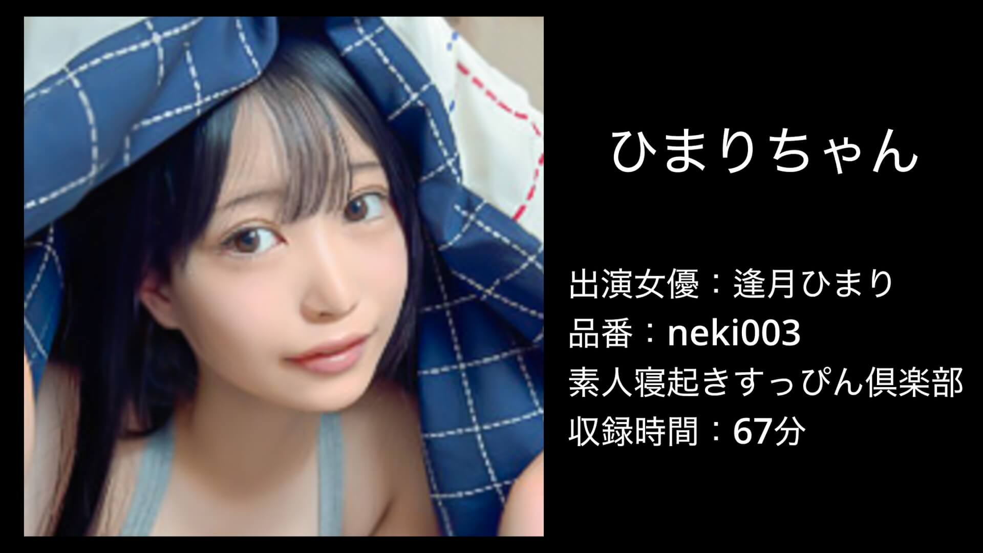 neki003|【ひまりちゃん】は、素人寝起きすっぴん倶楽部の配信作品で、出演女優は逢月ひまりさんです。