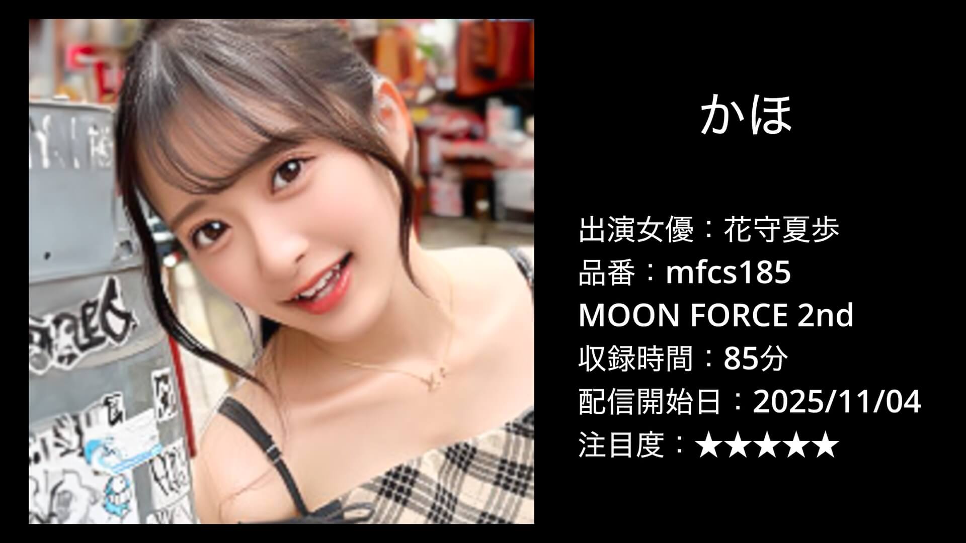 出演は花守夏歩さん。スレンダーなスタイルと柔らかい笑顔が印象的な、MOON FORCE 2ndらしい“透明感×密着感”のバランスが際立ちます。